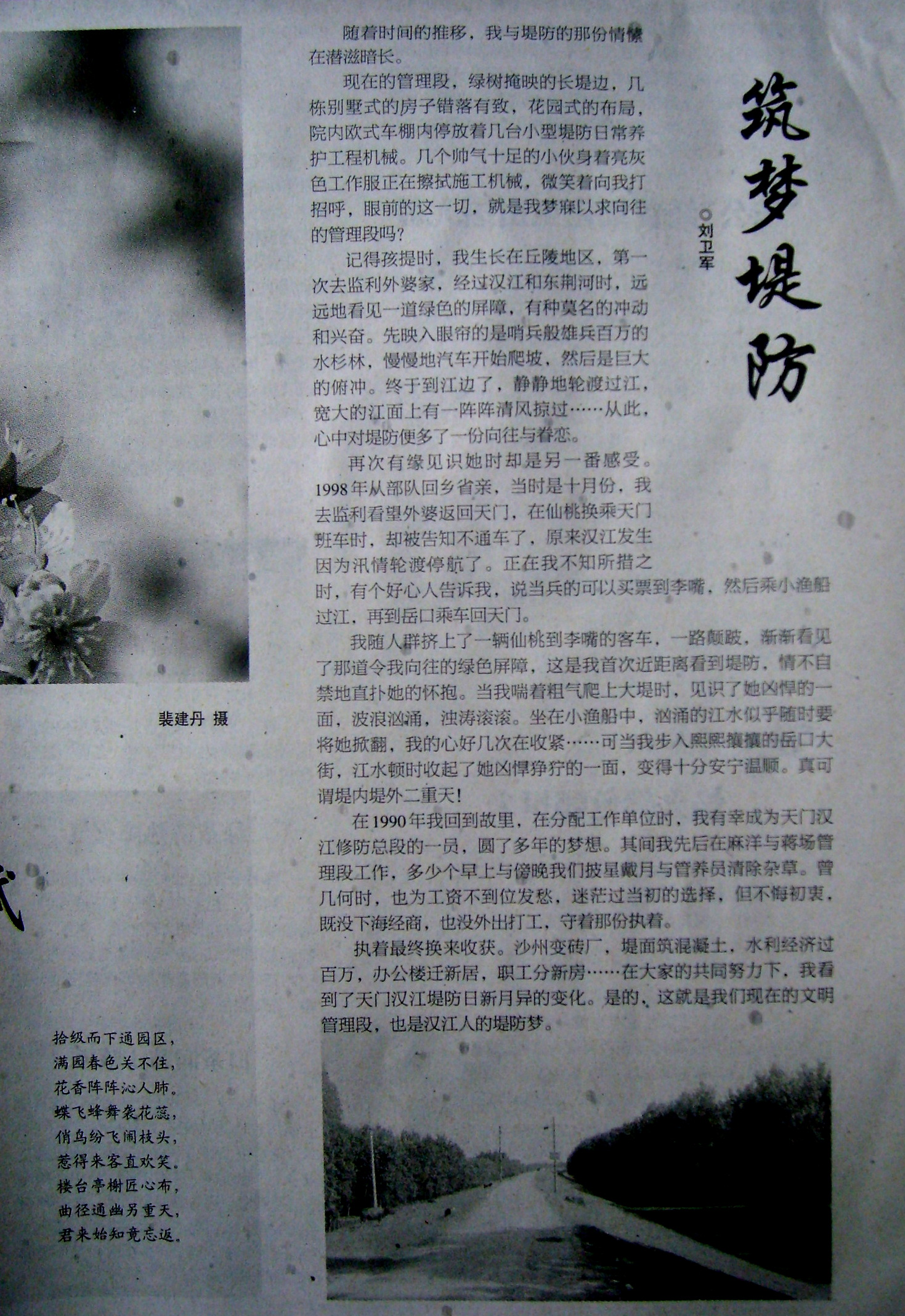 天门分局刘卫军的散文、钟祥分局李光明的篆刻见报
