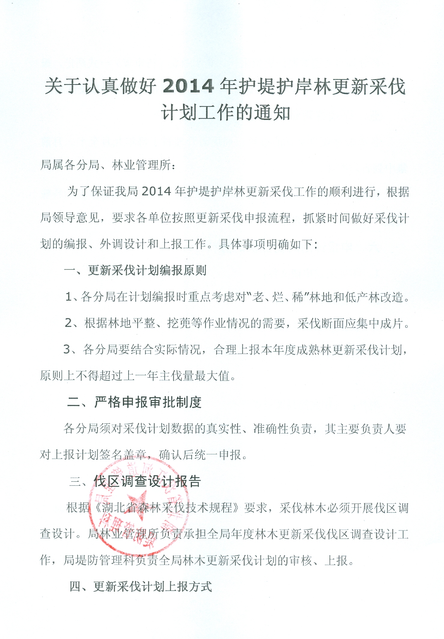 关于认真做好2014年护堤护岸林更新采伐计划工作的通知