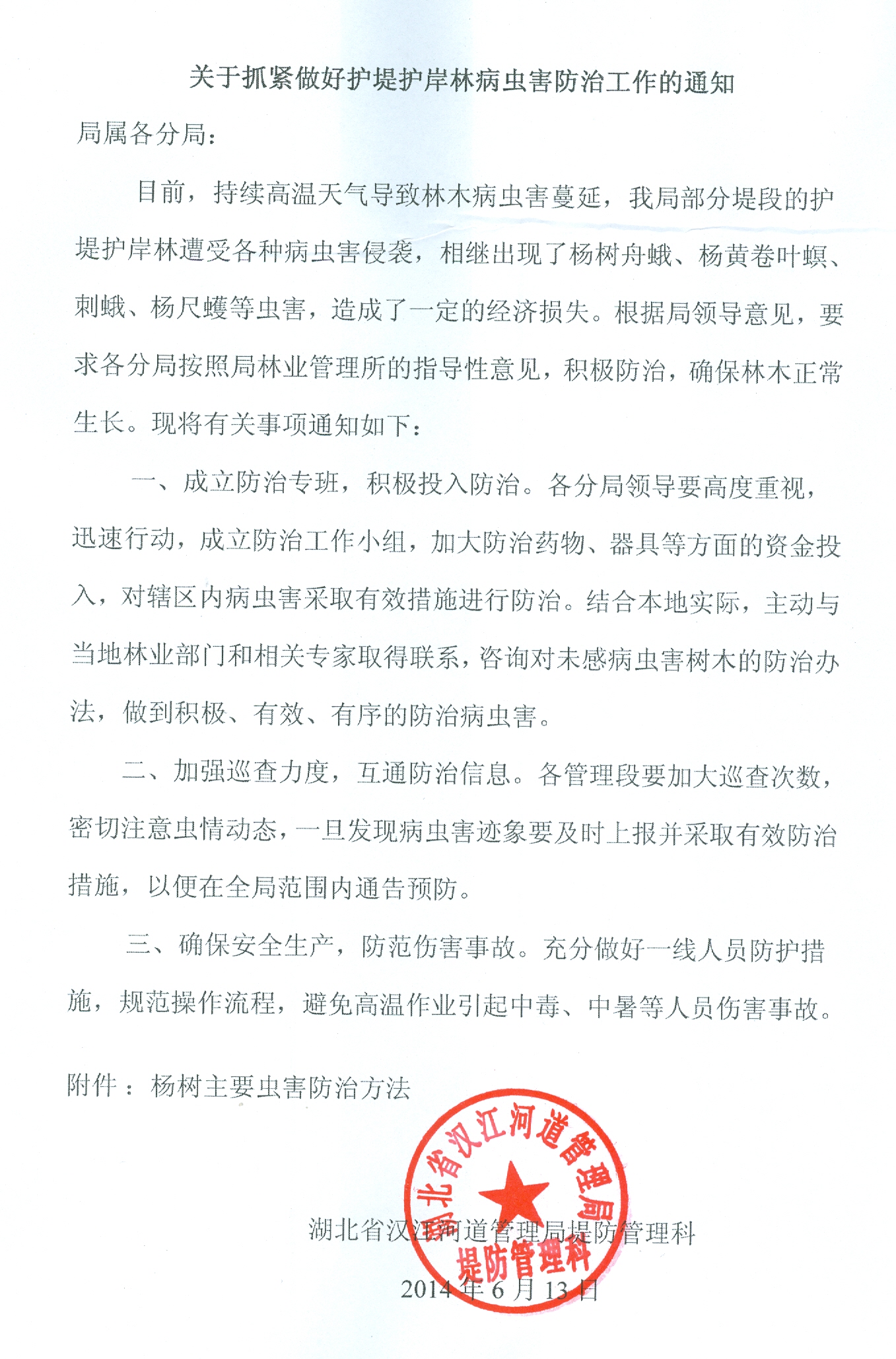 关于抓紧做好护堤护岸林病虫害防治工作的通知