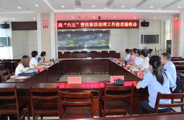 (魏顺新)8月20日,潜江市普法依法治理检查组到我局就“六五”普法依法治理工作进行了终期验收检查,并以98.7的高分对我局“六五”普法依法治理工作给予了高度肯定。局长李洪兵、党委书记许树青、副局长刘伦华及局安监法制科、水政支队负责人参加了检查验收会。