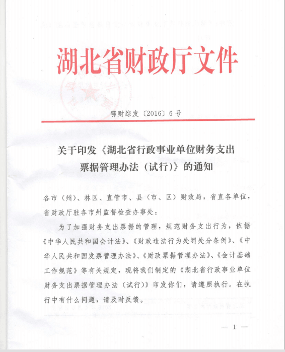 关于印发《湖北省行政事业单位财务支出票据管理办法(试行)》的通知