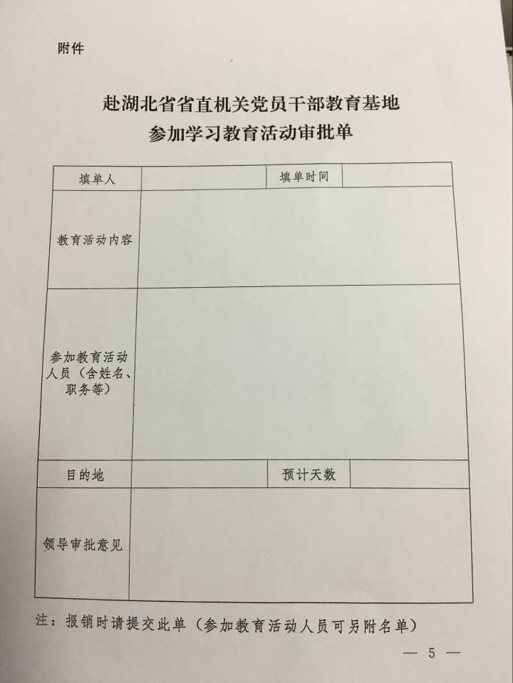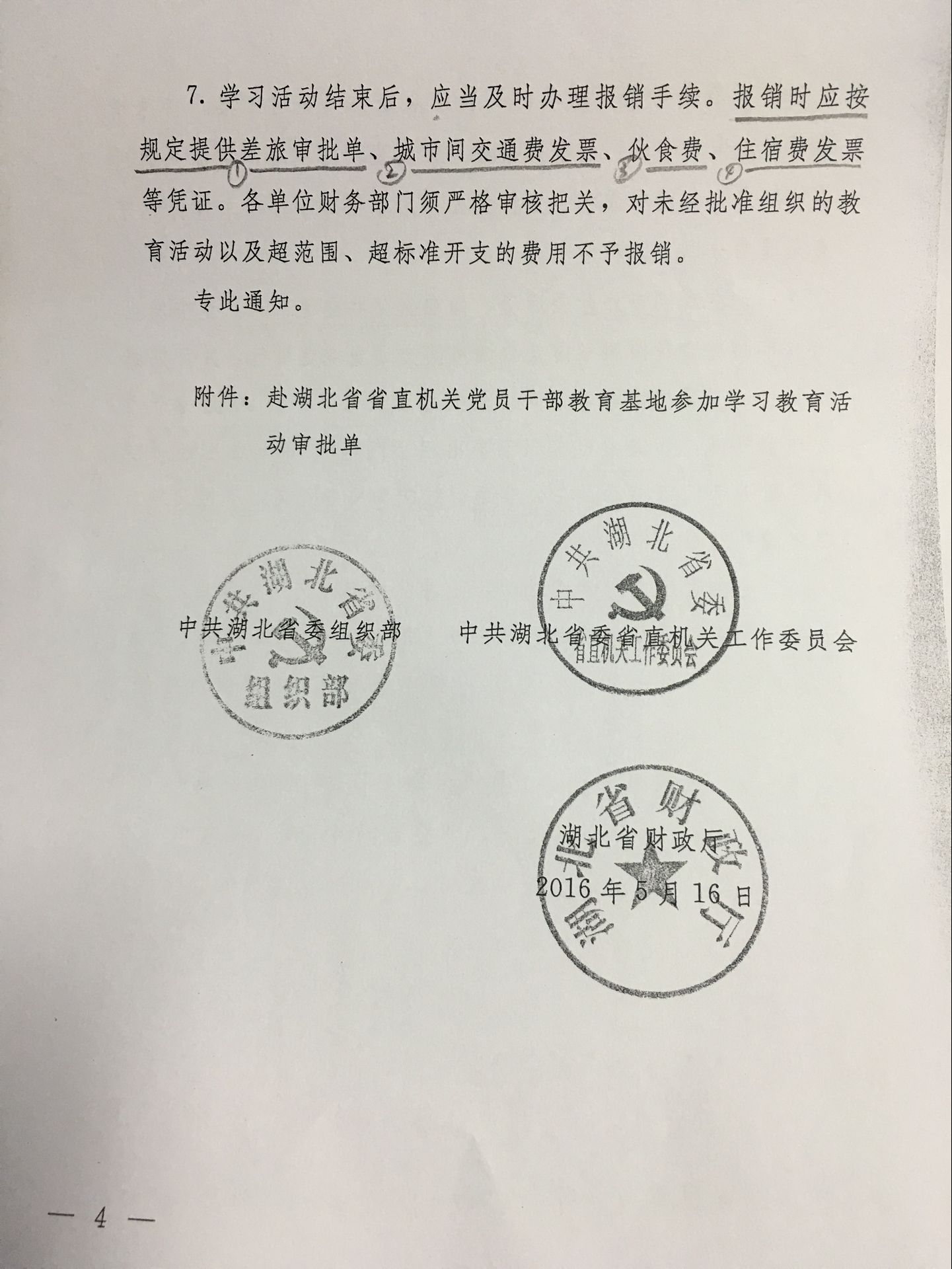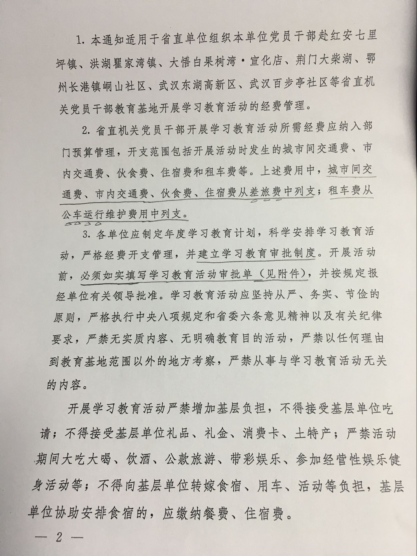 关于规范赴湖北省直机关党员干部教育基地开展学习教育活动经费管理的通知