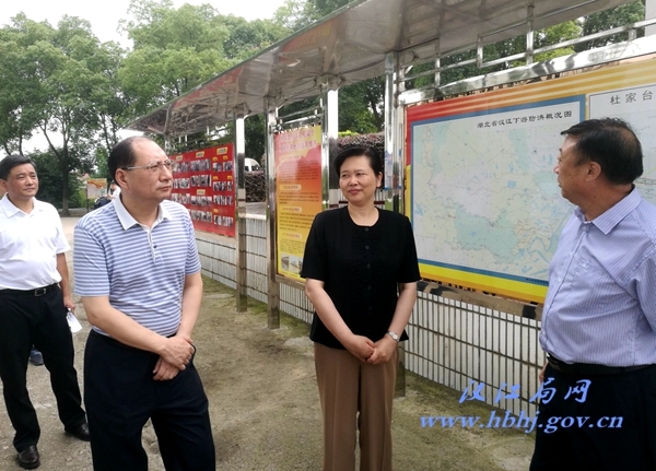 王艳玲一行先后来到杜家台分洪闸、潜江汉江龙头拐险段,实地了解了入汛以来重要水利工程设施运行与管理、重点险工险段整治、防汛预案编修和防汛物资准备等方面的情况,并听取了相关人员的介绍和汇报。