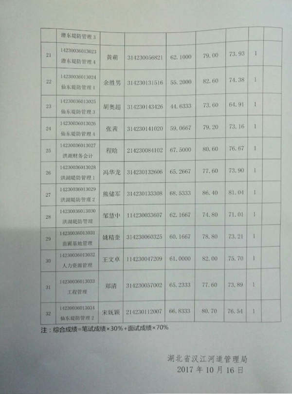省汉江局2017年拟聘人员公示