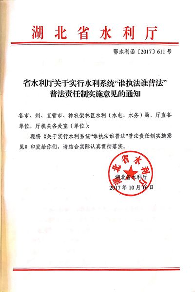 现将《关于实行水利系统“谁执法谁普法”普法责任制实施意见》转发给你们,请结合实际,认真贯彻执行。