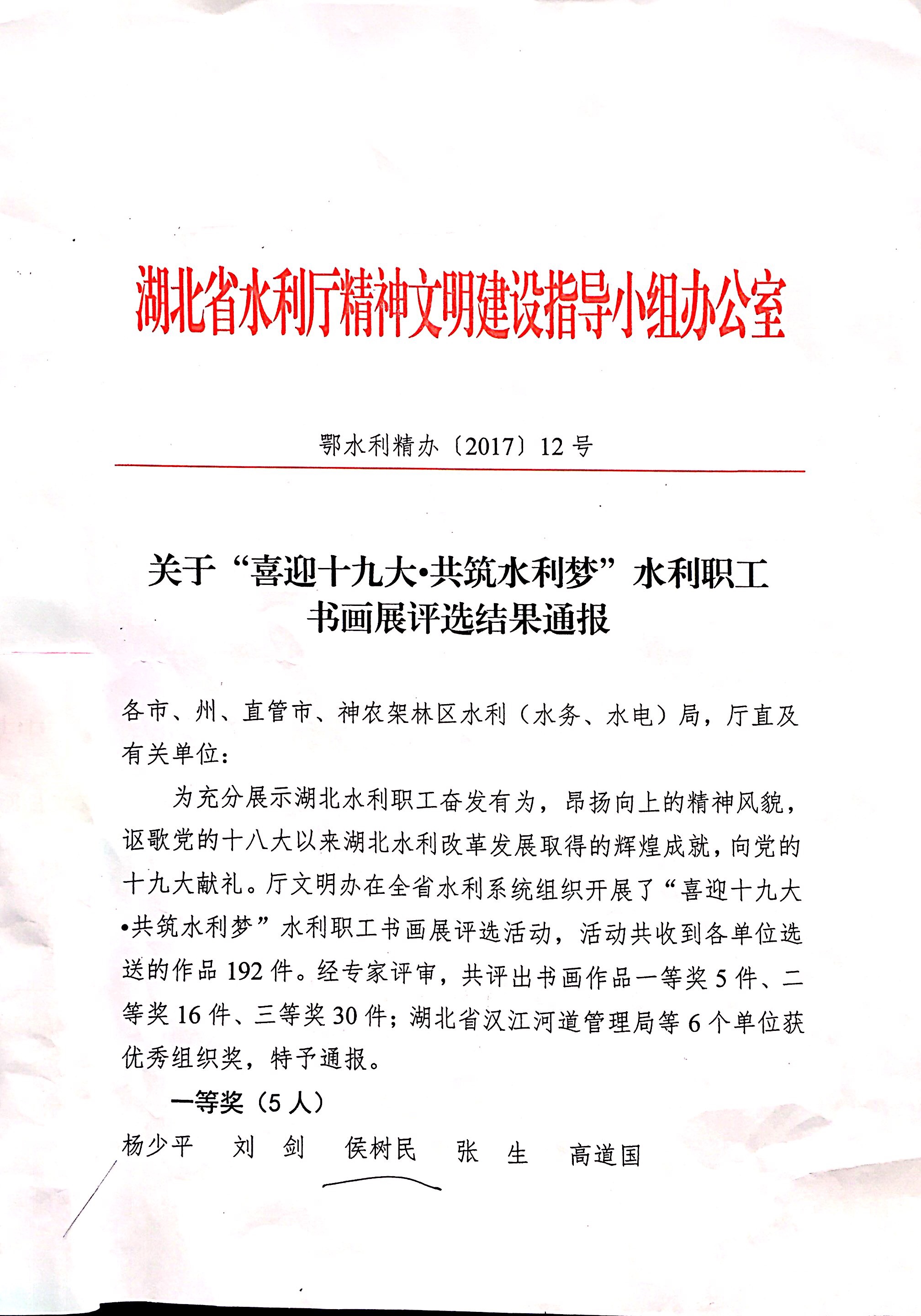 关于“喜迎十九大·共筑中国梦”水利职工书画展评选结果通报