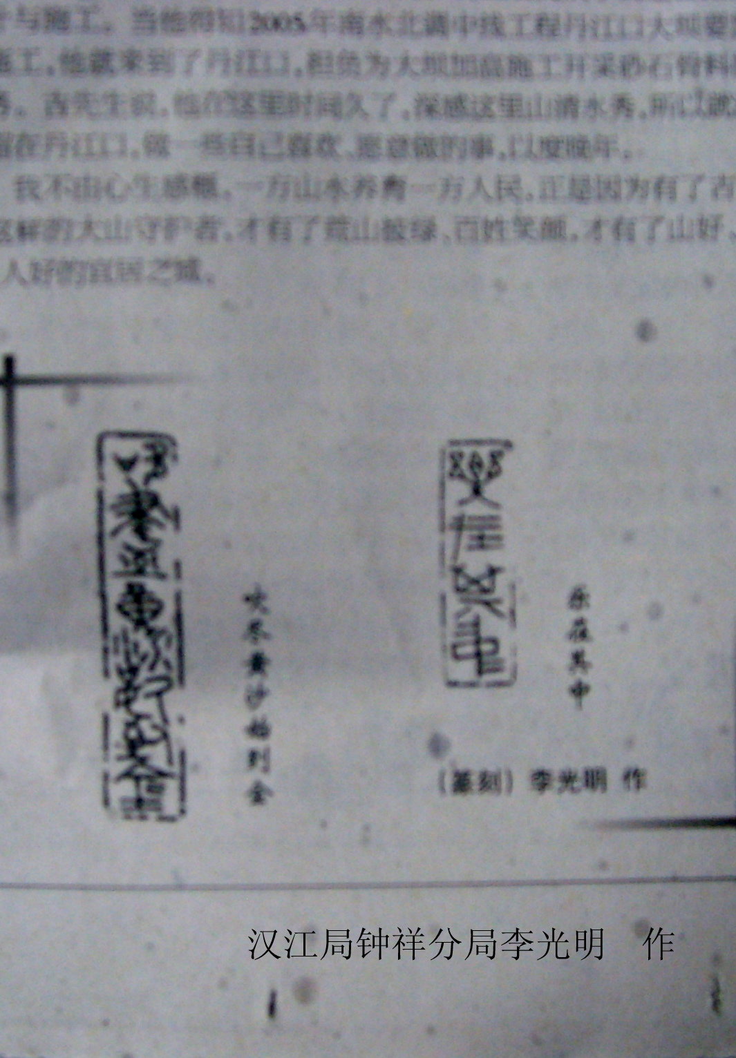 天门分局刘卫军的散文、钟祥分局李光明的篆刻见报