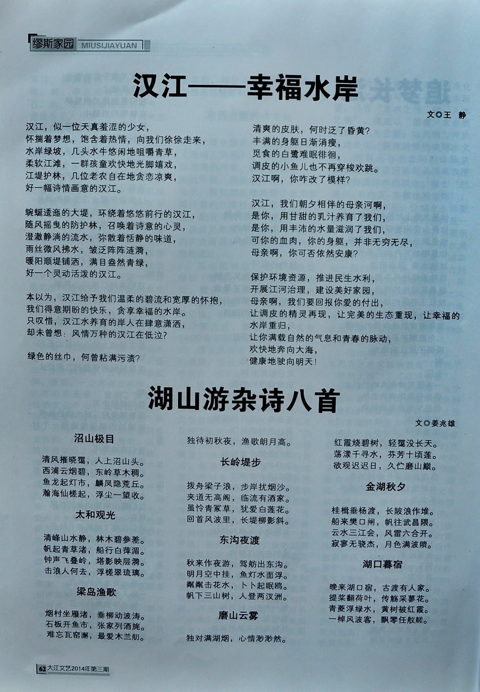 钟祥分局王静的散文在2014年大江文艺第三期上刊登