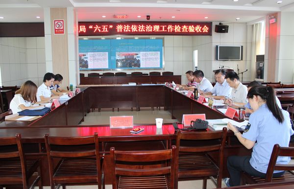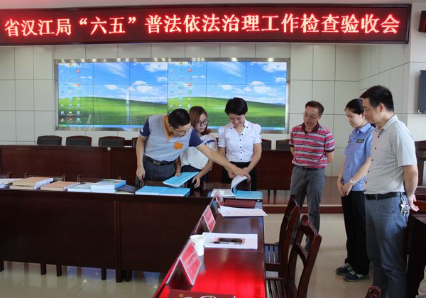 (魏顺新)8月20日,潜江市普法依法治理检查组到我局就“六五”普法依法治理工作进行了终期验收检查,并以98.7的高分对我局“六五”普法依法治理工作给予了高度肯定。局长李洪兵、党委书记许树青、副局长刘伦华及局安监法制科、水政支队负责人参加了检查验收会。