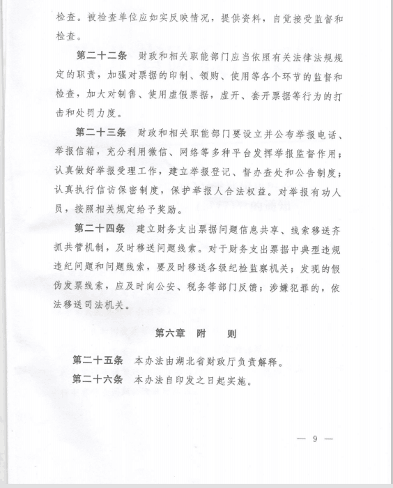 关于印发《湖北省行政事业单位财务支出票据管理办法(试行)》的通知