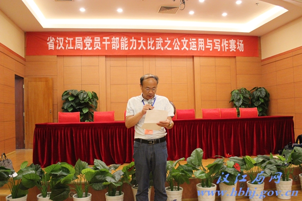 这次公文运用与写作比赛是我局 “党员干部能力大比武”的一个重要内容。比赛题目以与工作密切相关的公文为主,涉及通知、请示、报告、总结、函等实用性较强的文体,主要考察干部职工对公文的格式、内容、程序的把握及基本文字水平。按照公平、公正的原则,比赛参照省直事业单位工作人员招考程序,由局组织有关专家统一命题、统一标准、统一阅卷,采用闭卷、笔试的方式进行,局纪委有关负责人现场全程监督。