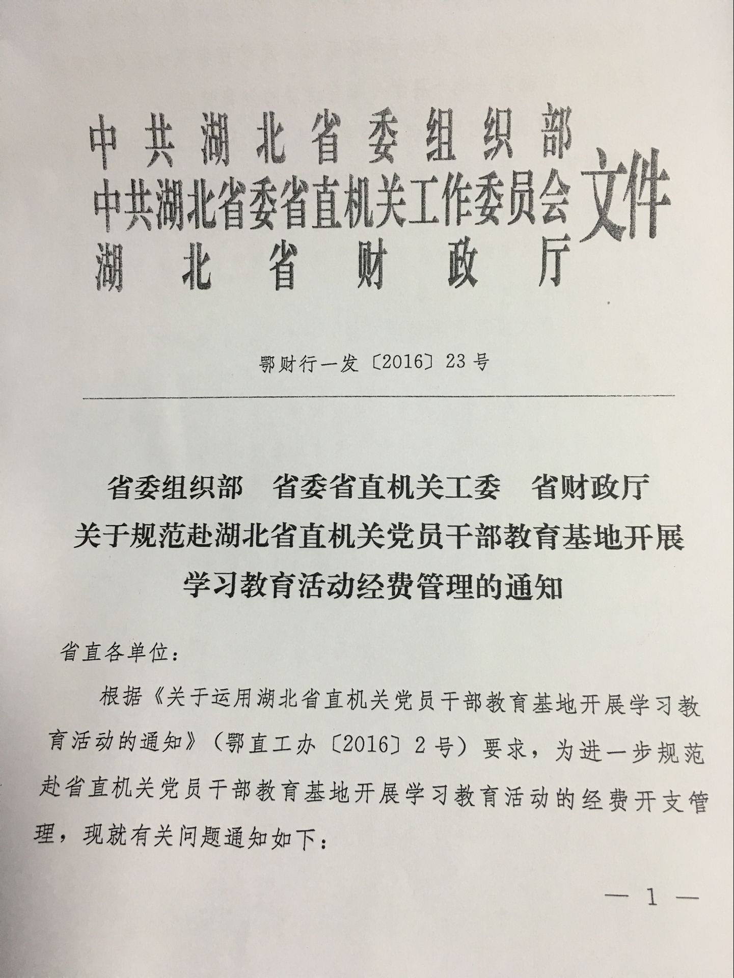 关于规范赴湖北省直机关党员干部教育基地开展学习教育活动经费管理的通知
