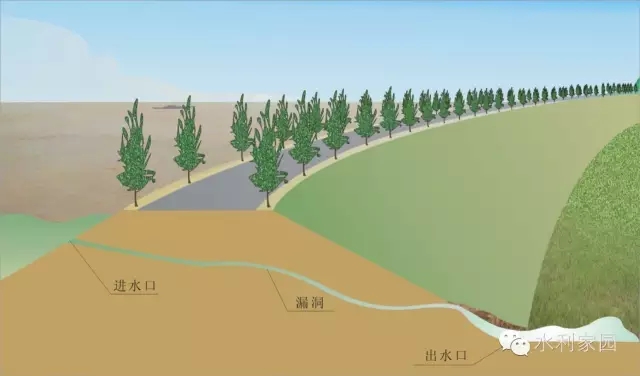 漏洞险情 漏洞是贯穿堤身或堤基的水流通道。堤防土质多沙,抗冲能力弱,漏洞扩展迅速,极易造成决口。发现漏洞后,必须尽快查出进水口,全力以赴,迅速抢堵。同时,在背河出水口采取反滤措施,以缓和险情。抢堵后应有专人观察。